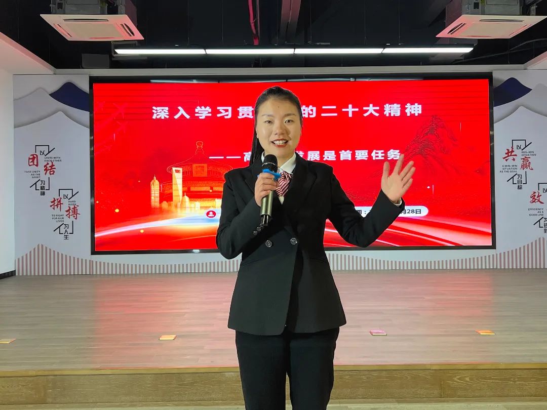 本次活動由“8090 00”集團公司青年宣講團成員邱麗萍和周睿兩位成員宣講。邱麗萍以《積極推進企業(yè)高質量發(fā)展 全力打造先進裝備制造業(yè)標桿——黨的二十大精神宣講》為題,通過文字視頻形式,全面生動闡述了高質量發(fā)展的理念、途徑和高質量發(fā)展下中國社會中現(xiàn)代化的成就,并結合公司實際,展現(xiàn)出公司踔厲奮發(fā)、勇毅前行的堅定信心和勇氣。周睿以《深入學習二十大精神 走好新時代趕考路》為題,從實施創(chuàng)新驅動發(fā)展、人才強國戰(zhàn)略和推動高質量發(fā)展等角度入手,結合公司實際和自身體會認識,宣講年輕人要銘記“來時的路”,走好“腳下的路”,堅定“未來的路”,為公司的發(fā)展貢獻火熱青春和智慧力量。